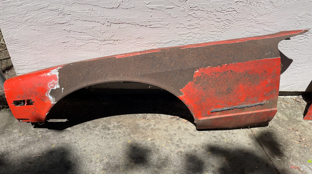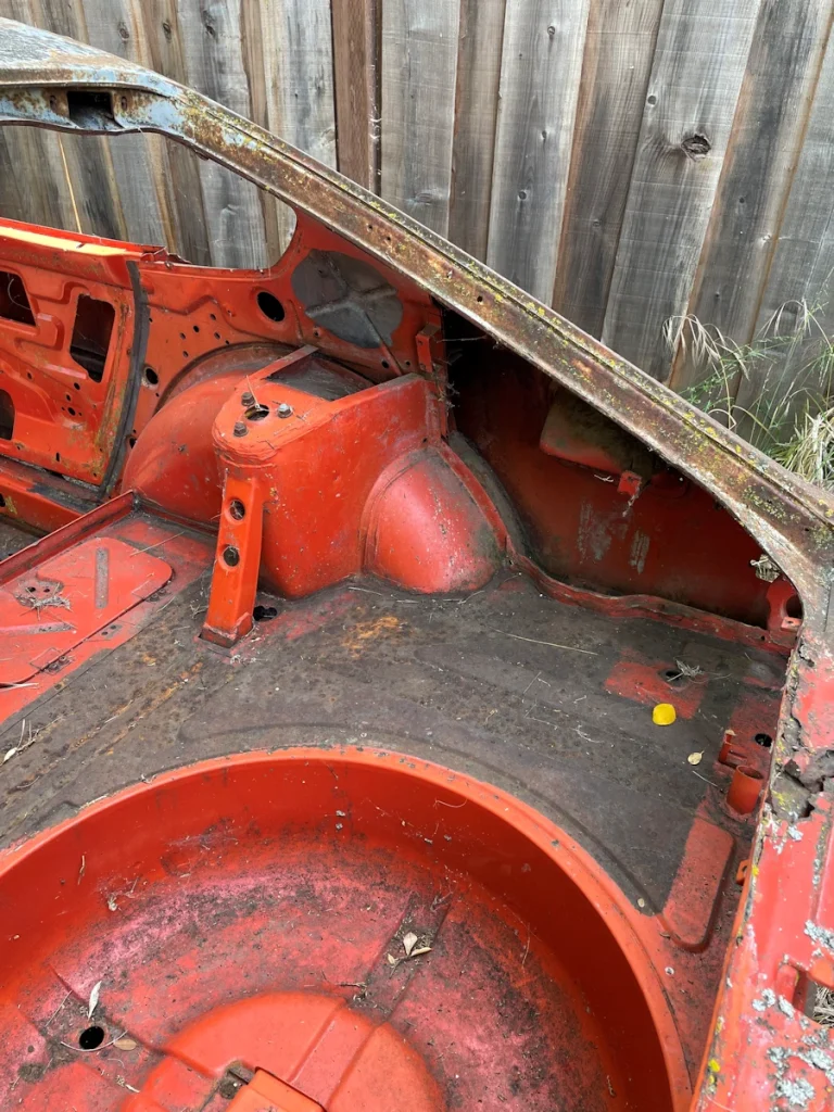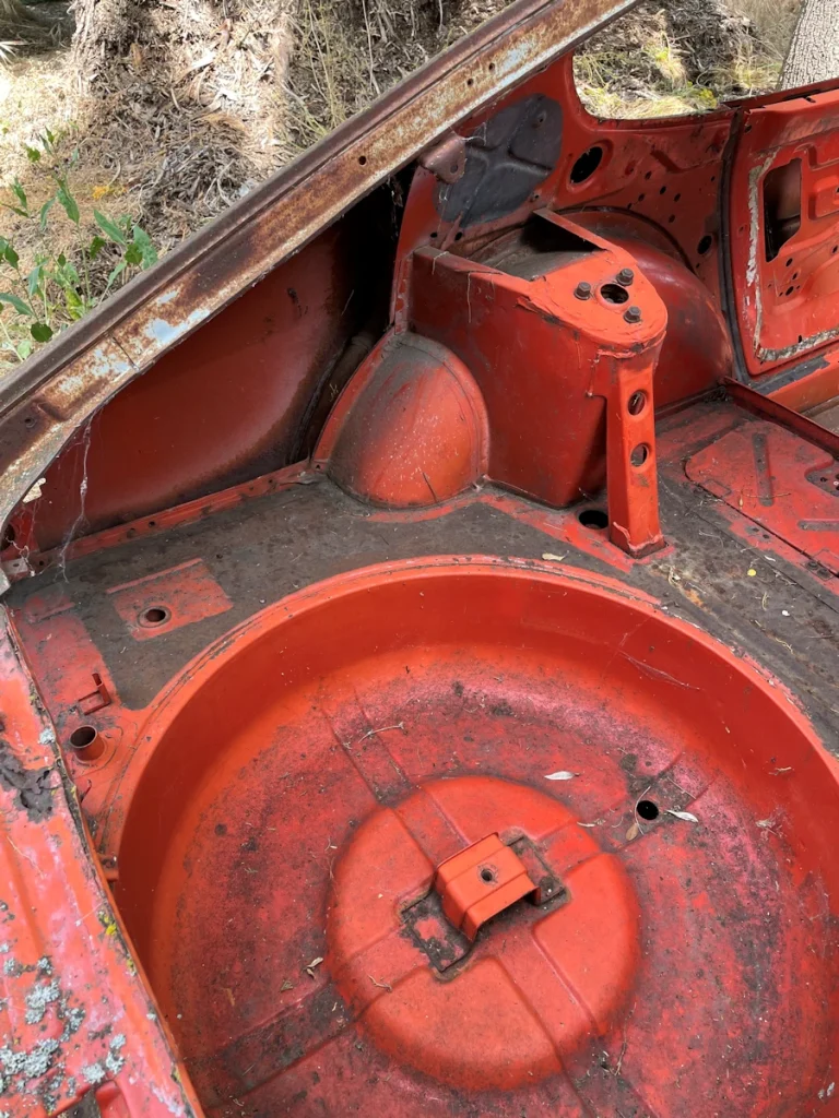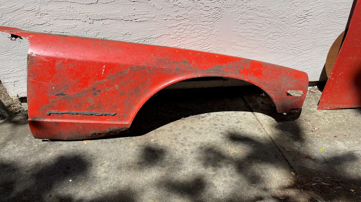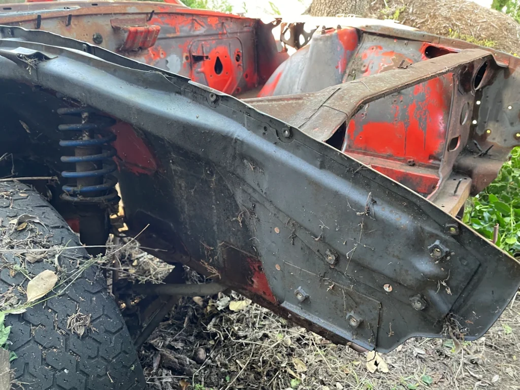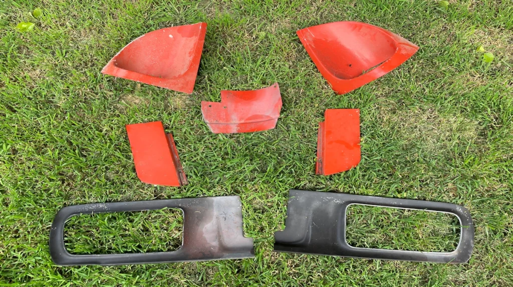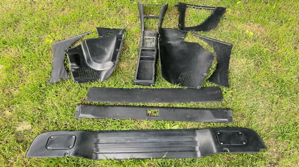 Below are the pictures I have so far and are not the only parts available. It is far easier to list the parts I don’t have than the parts I do. The list is short. I don’t have the fuel tank, air filter and exhaust manifold. I have some of the interior carpet pieces but they are not in good shape. The left-side interior quarter panel (plastic piece) and the rear tail lights were broken at some point.