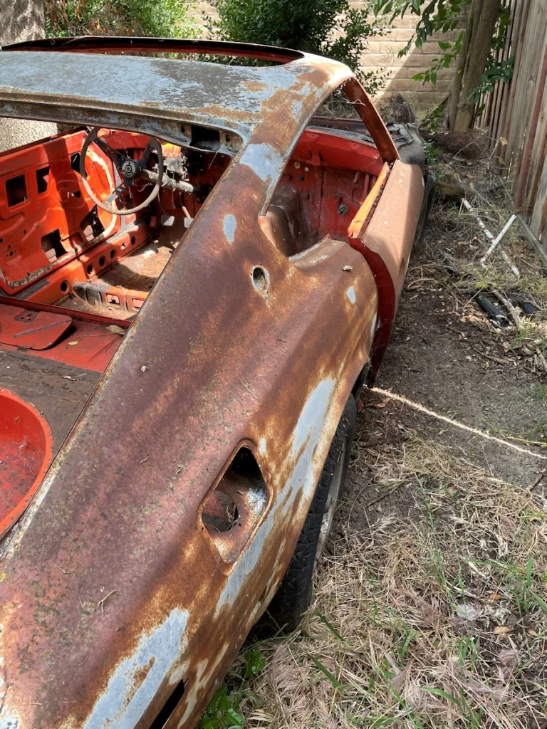 This was my childhood dream car. I purchased it from the second owner in 1981. I got a lot of fun years out of the car before I had to move to the family utility car phase of my life. Decided it was a perfect car to fully restore and upgrade. Completed about 90% of the tear down but got sick and could not finish. All the parts and the frame have been stored in and around my house for over 10 years. Unfortunately I could not store all the parts inside.